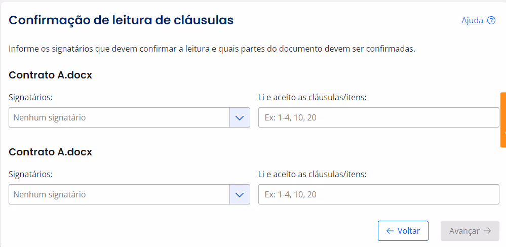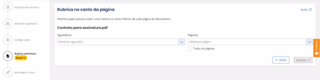 At Clicksign, the electronic rubric can be used in different ways. Below are the different ways to use and how to configure the functionality when sending a document for signature: