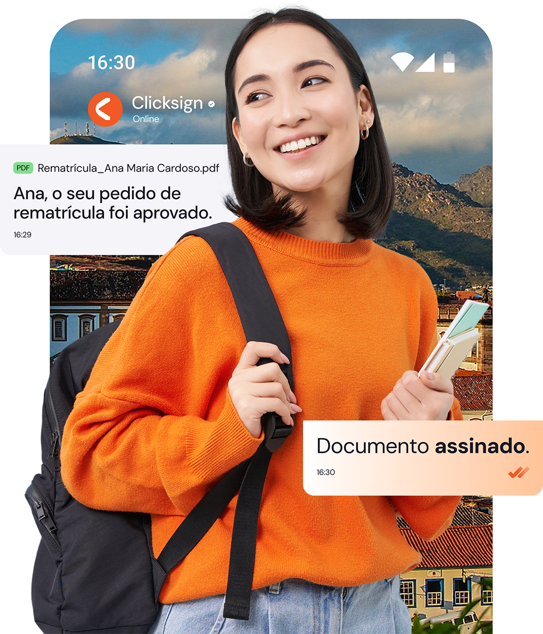Simplifique a jornada de seus clientes integrando a assinatura eletrônica ao canal de comunicação mais utilizado no país, sem precisar de outros aplicativos ou sites externos.