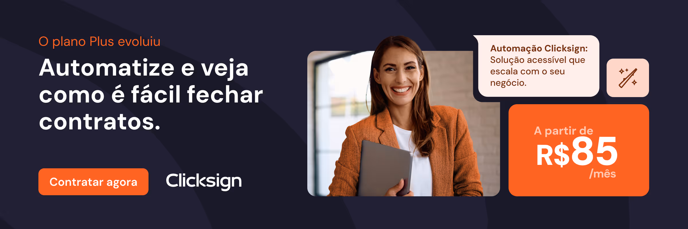 Por fim, tanto a assinatura eletrônica quanto a automação de tarefas possuem o grande benefício de fazer com que você economize seu próprio tempo, tendo a liberdade para focar em tarefas importantes e estratégicas. Conheça as soluções da Clicksign e aplique hoje mesmo em seu negócio.
