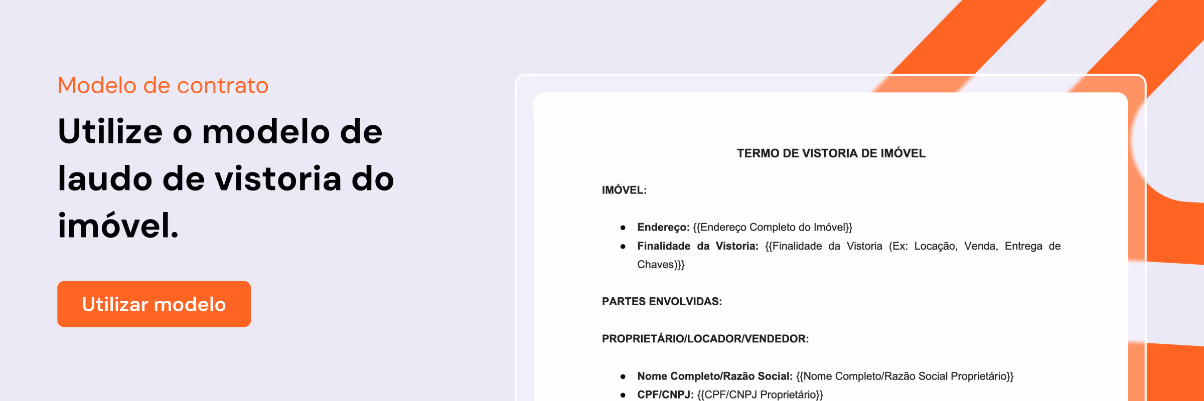 E para tornar esse processo ainda mais simples e seguro, a Clicksign disponibilizou um modelo pronto de Laudo de Vistoria para facilitar seu negócio. Com os recursos de assinatura digital oferecidos na plataforma, é possível enviar e assinar documentos em poucos minutos, com validade jurídica, praticidade e toda a segurança necessária para formalizar seus acordos.