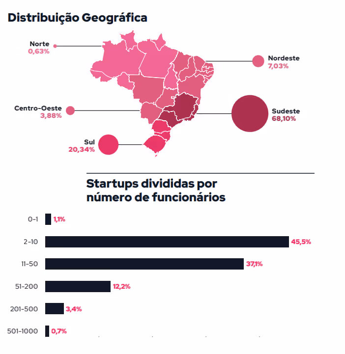 Another interesting fact is the location of these companies here in Brazil. Most of the Healthtechs are based in the Southeast and South regions, which represent 68.10% and 20.34% of the national market, respectively.
