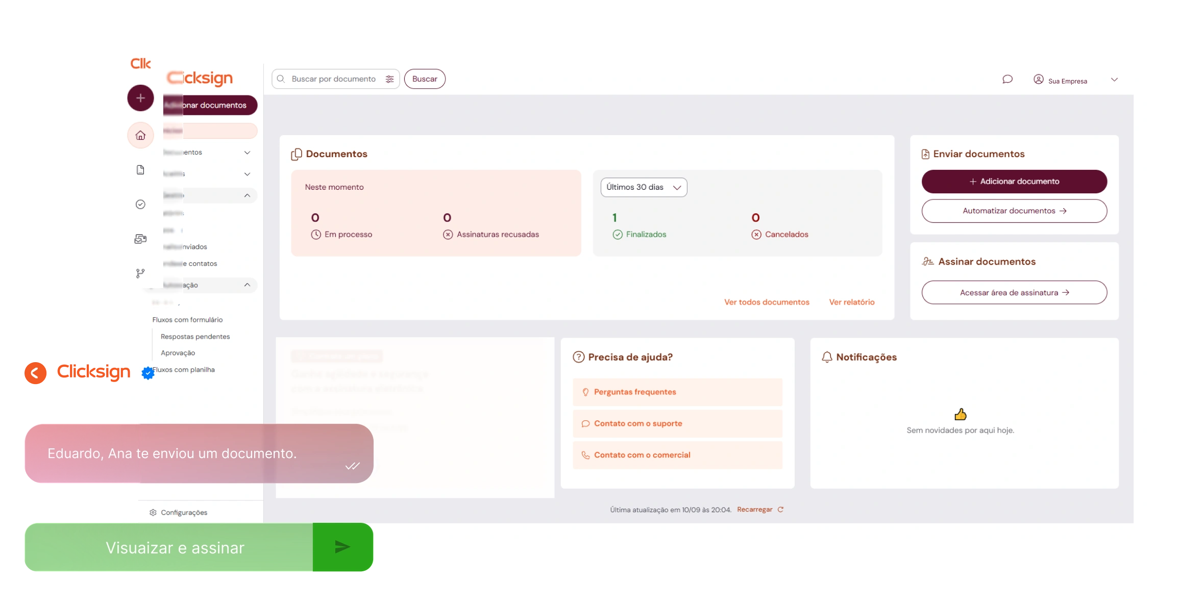 Do e-mail ao WhatsApp, assinaturas concluídas em segundos.